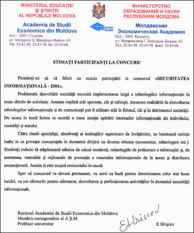 CONCURSUL "SECUTITATEA INFORMATIONALA - 2001" |