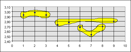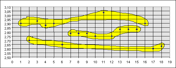На основе анализа таблицы 3 и рис. 1, 2 и 3 можно сделать предварительный вывод, что комплексные оценки угроз распределены в следующих интервалах: до 2.70; от 2.71 до 2.85 и больше 2.85. Исходя из вышеизложенного, все угрозы безопасности и злоупотребления целесообразно разделить на три основные группы: - неопасные угрозы, которые легко предотвращаются или обнаруживаются, нейтрализуются и устраняются; - опасные, для которых процессы предотвращения, обнаружения и нейтрализации, с точки зрения технологии, не отработаны; - очень опасные, которые обладают максимальными оценками по всем параметрам и реализация процессов противостояния сопряжены с огромными затратами. Данное выделение является нестрогим и может варьироваться при изменяться при изменении метода расчетов комплексной оценки. В то же время данный подход будет полезным при оценке риска. На основе проведенного анализа представляется возможность развития описанного в [5] подхода описания привлекательности угроз для нарушителя, который строится с использованием следующих переменных: B0- выигрыш нарушителя от реализации угрозы; C0 - затраты нарушителя для подготовки и реализации угрозы. Следовательно можно утверждать, что