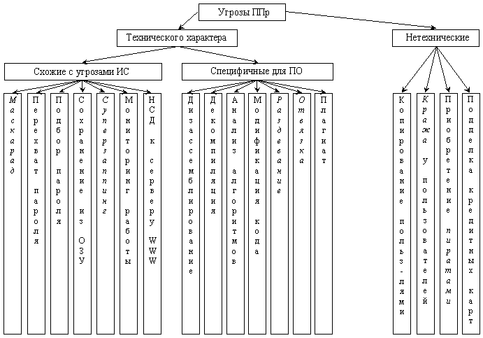 Угрозы безопасности ПО можно условно подразделить на следующие категории: