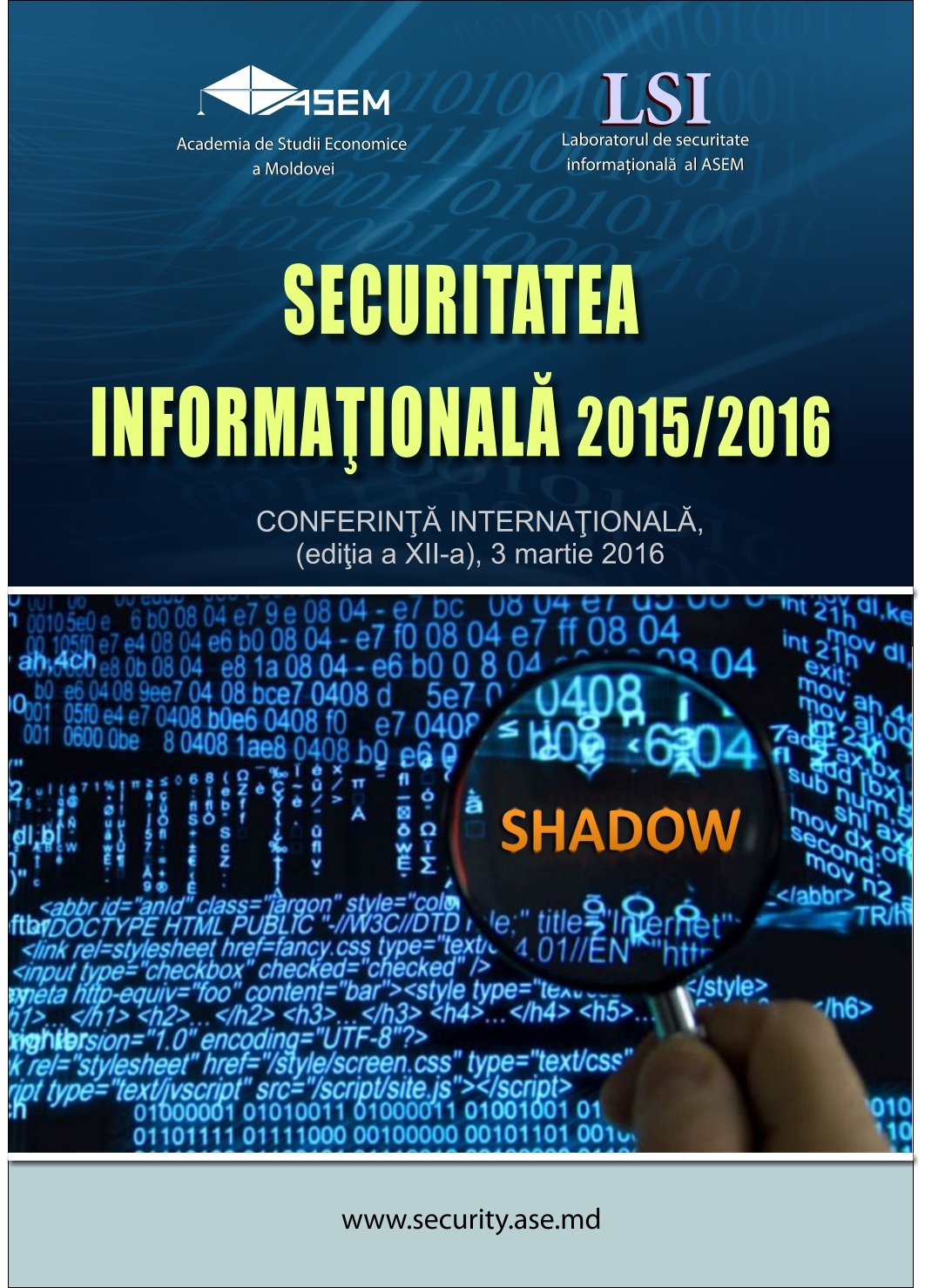 Лаборатория информационной безопасности при Молдавской Экономической Академии объявляет о проведении XII-й Международной конференции по информационной безопасности "Securitatea Informationala - 2015/2016" ( 3 Мартa 2016 года, 10.00 в 104B ). Организаторами конференции являются: